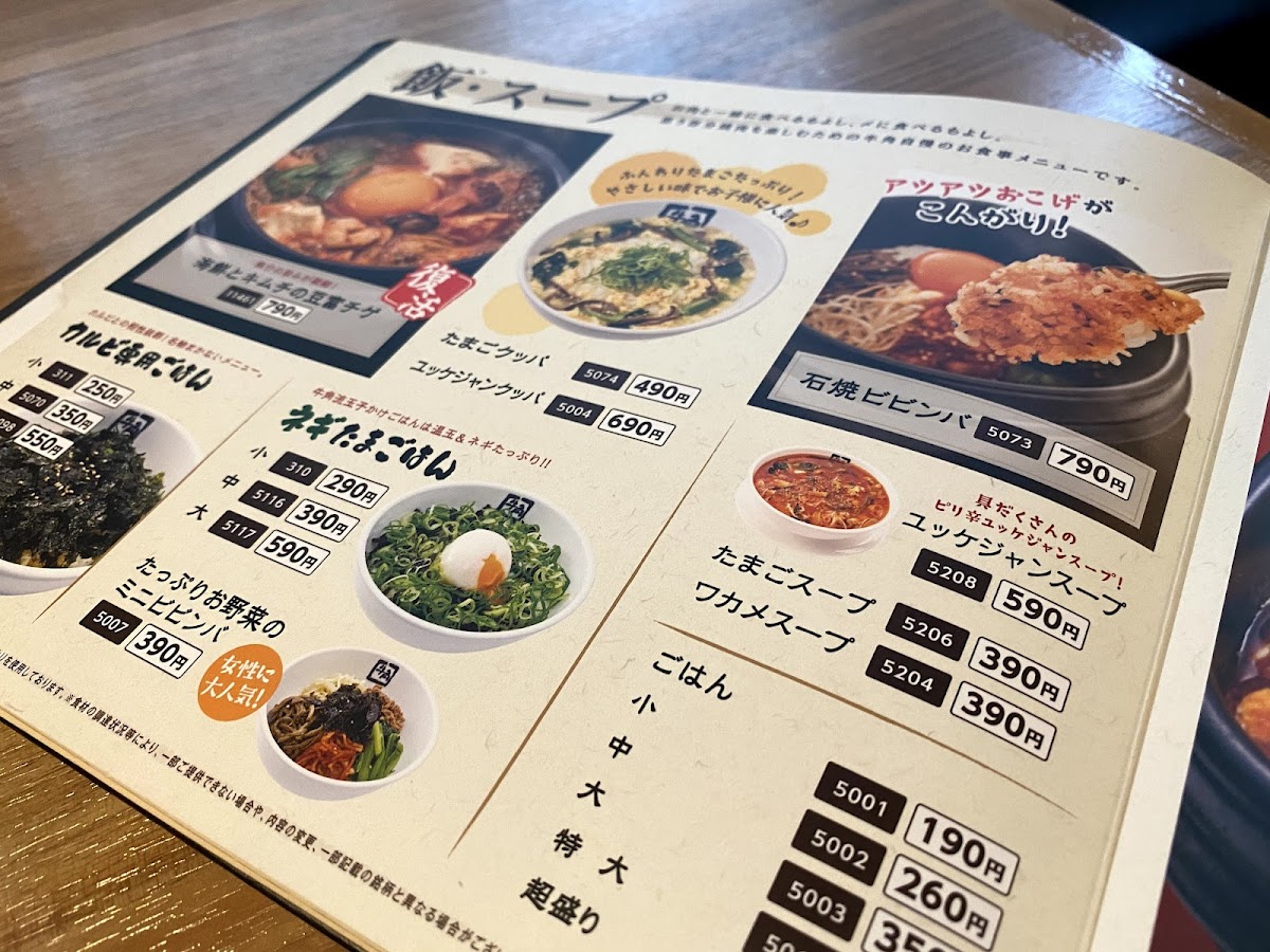 Gyu-Kaku Omoromachi Ekimae offers a menu filled with savory and unique grilled dishes that promise to satisfy any craving for Japanese BBQ. A standout is the 牛角上カルビ, a premium cut of beef that’s tender and perfectly marbled, making it a must-try for meat lovers. For a special treat, the 頭發黑的不乾淨的蝦 brings a distinct flavor profile, with shrimp that are grilled to perfection, offering a smokier taste. The カルビ専用ご飯中, a special rice dish, complements the grilled meats, adding a subtle sweetness that balances the richness of the BBQ. For those craving a full experience, the 焼き肉店 gives you the ultimate yakiniku set, ideal for sharing and enjoying a variety of grilled meats. As a refreshing side, the 丸ごと塩オクラ provides a light and healthy contrast to the grilled dishes, with fresh okra seasoned with salt, adding a crisp texture. Each item on the menu reflects the high-quality ingredients and dedication to flavor that Gyu-Kaku is known for, making it a go-to destination for an authentic yakiniku dining experience.